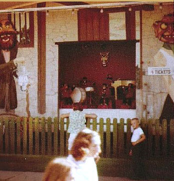 The classic attraction had for props: a scary gorilla, human head that would pop out of a box, a lion, snake in a tree, alligator, a crawling menacing spider and a familiar, for its time, “Old Dan” stunt that featured a moaning corpse that sat up in a coffin, scaring those who were young and young at heart. This stunt was also in many other parks including the fondly remembered version of “Dead Dan” from the defunct Pretzel ride in Bushkill Park, PA. |