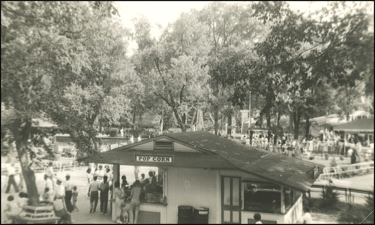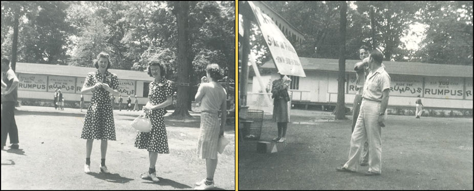The Rumpus, seen at the right of this photograph, joined other classic amusement park rides like the Ferris wheel and tempting refreshment stands that dotted Idlewild’s midway.