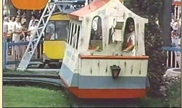 There was a huge wooden roller coaster, the likes of which I didn’t recall seeing before, that hovered alongside Kiddieland like a mammoth white serpent. Even the runaway trolley car (the Toonville Trolley to be exact) I saw zig-zagging its way over the greenery, was bigger than any kiddie ride vehicle I’d ever seen.