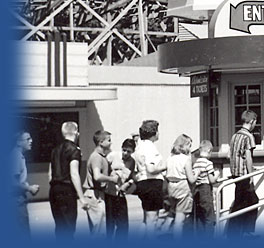 As you entered it tripped the stunt and the whole wall tipped toward you with a barrel at the top, rolling fast toward your impending doom! It was a great illusion and one of my favorites! Then you entered a dark, narrow hallway and made your way to the next stunt. When you stepped on a tripping device, a scene lit up and a Groovy Grandma in a chair would turn around and face you. She was knitting and very loud psychedelic music would play. I kinda think this was a Norman Bates scene and have heard it was attributed to stunt maker Bill Tracy. |