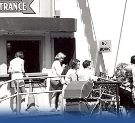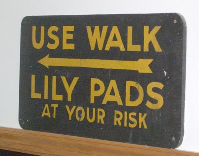 At last you would see some light from outside and end up on an outside balcony where there were air jets to greet you! There, you could go around an outside railing or walk through “The Lily Pads “: 4 round red discs about 12 inches wide and about 6 inches over a tray of water. Once you stepped on a “Lily” they would turn and twist, making them hard to walk on. You could hold onto the narrow walls beside it and slowly work your way across. |