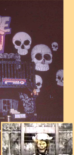 Very little information exists on it today and what we do know is even more confusing. The outside was adorned with skulls, had a centerpiece of a patient in an electric chair, and featured a giant pterodactyl on the left. To add more to the mystery, the inside was themed as a western ghost town. It also contained falling barrels and other classic stunts.