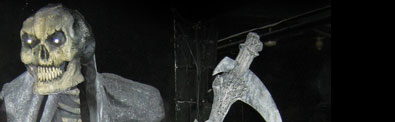 head pan/tilt, jaw and six isolated arm movements. And to make matters worse, he’s armed with a threatening scythe, made of aluminum, thank goodness! |