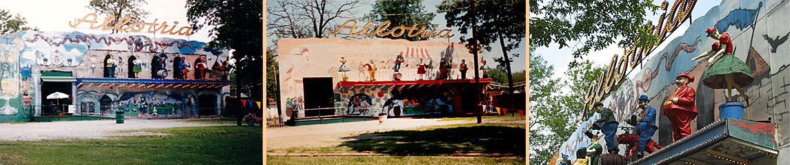 Among the rides brought over from Palisades Park to Williams Grove were several kiddie rides, the roller coaster train from Palisades Cyclone coaster, a Music Express and a fan favorite, the Allotria, a two-story semi-portable fun house built by Mack Rides of Germany. The name Allotria meant "Monkey Business" in German. The Allotria featured six life sized animated characters on the roof, halfway up the facade that were dressed in Octoberfest style clothing. Music was played with a polka band style in the early years