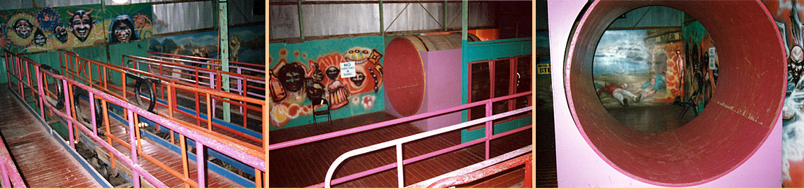 Patrons would then descend down to the main portion of the funhouse only to be confronted with more shaking, tilting and spinning walkways. The finale was a large spinning barrel that one would have to walk through. It was great fun to watch kids distract the attendant near the barrel so their friends could attempt to do handstands in the barrel!