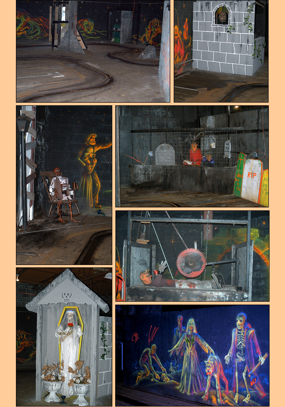 | The ride remained unchanged for several years until the park's soon to be last operating year. In early 2005, Chris Giffen of Sinister Shadows of York, PA had bumped into Morgan Hughes at the park, and pitched his idea of revamping the Inferno. While riding away on his golf cart, Morgan yelled back to Chris "Knock yourself out!" Chris would go on to paint over much of the older artwork, or add details like glowing eyes, and he added to the original stunts along while installing more modern blacklights to give the stunts an updated look. |