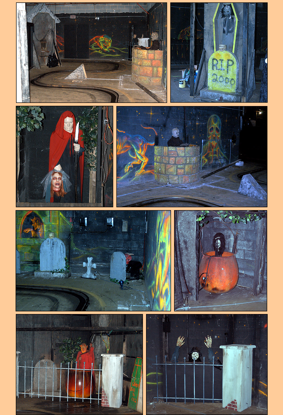 And he even put up a new Dante’s sign on the facade. Chris also installed hidden cameras that fed a live video to flat monitors that hung in the queue line so that waiting riders would know they would be watched. This was a deterrent to people considering vacating their cars in order to leap out to startle the next cars of riders or cause other forms of mischief. Chris was also lucky enough to run the ride in his spare time, and lovingly improved Dante's for what would be its last year of operation.